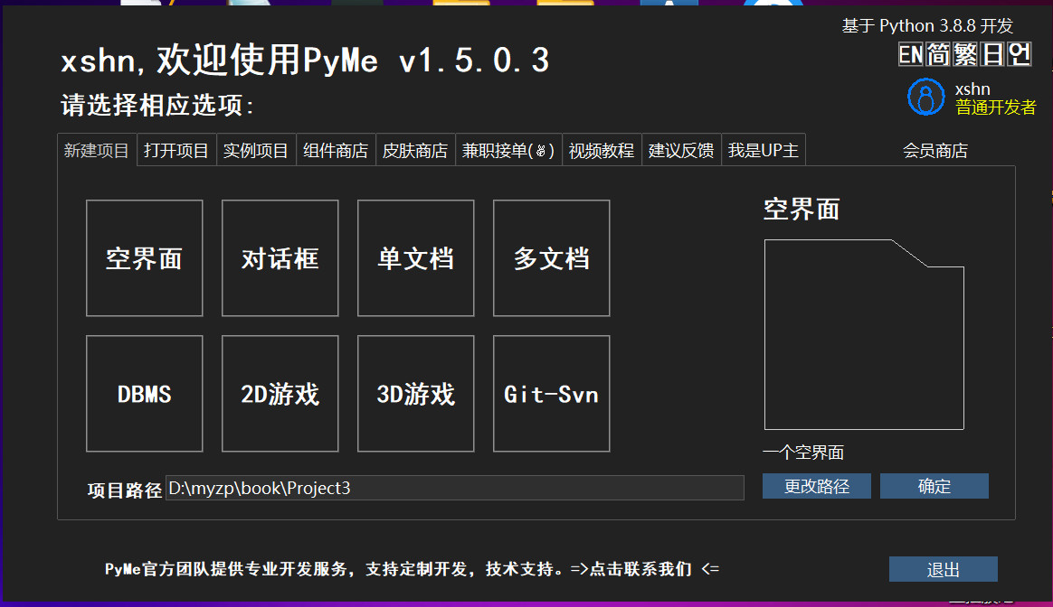 我把PyMe1.5.0.3目录改个名,再重新解压PyMe1.5.0.3-win64.rar,并放在相同的目录,运行pyme.exe一切正常,再运行改目录的那个pyme.exe也正常了,这是不是什么初始设置造成的